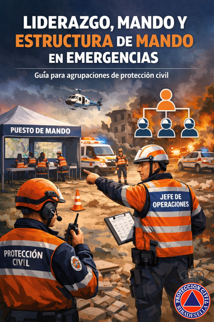 - Liderazgo, Mando y Estructura de Mando en Emergencias: Esta guía está dirigida a los voluntarios y voluntarias de la agrupación de protección civil que desempeñan o aspiran a desempeñar roles de responsabilidad durante la respuesta a emergencias: jefes de grupo, responsables de puesto de mando avanzado y cualquier persona que deba tomar decisiones o dirigir a otras en una situación de crisis. Ver la Guía